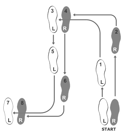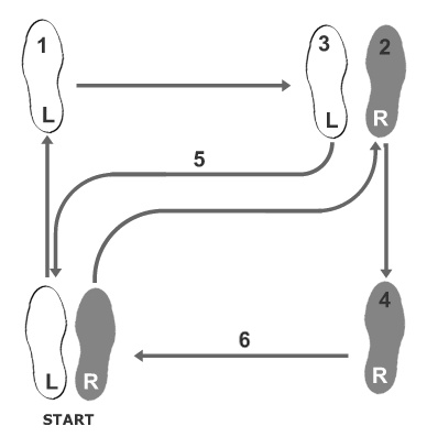 Pleše se na bolj počasno glasbo, v zaprti drži in v tipičnem kvadratu. Na sliki je prikazan levi kvadrat, mi smo na tečaju večinoma delali desni kvadrat (desna noga prva naprej).
